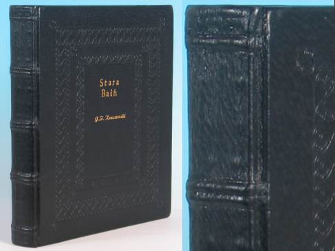 Blindgeprägtes Schweinsleder auf zwei Bünden und drei Doppelbünden, handgestochene naturfarbene Kapitale. Die Deckel außen mit blindprägt. Ornamente, auf dem Vorderdeckel goldgeprägt. Titelei, Stehkanten mit blindgeprägter Linie. Contemporary blindstamped pigskin over wooden boards, five raised bands. - Format 27 x 32 cm., 25 ark. - Schweinsleder nr 8: 078. - Vorsätze aus Marmorpapier |