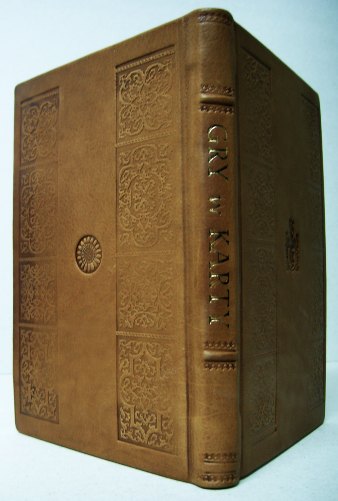 ![]() Oprawa skórzana stylizowana, kapitałka szyta ręcznie, wyklejka z papieru ręcznie antykowanego, tłoczenie złotem tytulatury na grzbiecie, zdobienia na okładkach suche. - Format ca B6 - skóra cielęca antykowana - papier ręcznie antykowany |