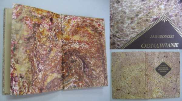![]() Oprawa papierowa i wyklejka z papieru ręcznie marmoryzowanego (marmurek), szycie maszynowe, szyldzik na podłożu papieru ozdobnego ręcznie złocony, z tytulaturą. - Format: B4, ok. 5 ark. - papier ręcznie marmoryzowany |