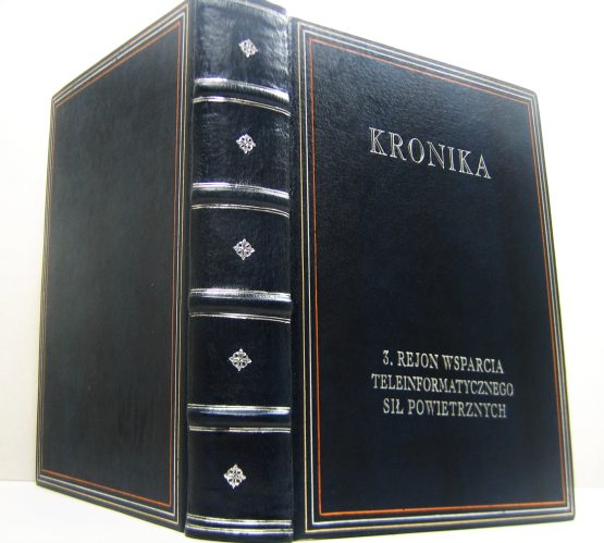 ![]() Oprawa skórzana z grzbietem zwartym, ręczne szycie kart, zwięzy na tłoczonym grzbiecie, kapitałki szyte ręcznie, tłoczenia złotem i suche na okładce przedniej, wszyte przekładki dystansujące Format A3+, 200 kart, papier ozdobny 120 g/m2 - skóra licowa - wyklejka z papieru ozdobnego |