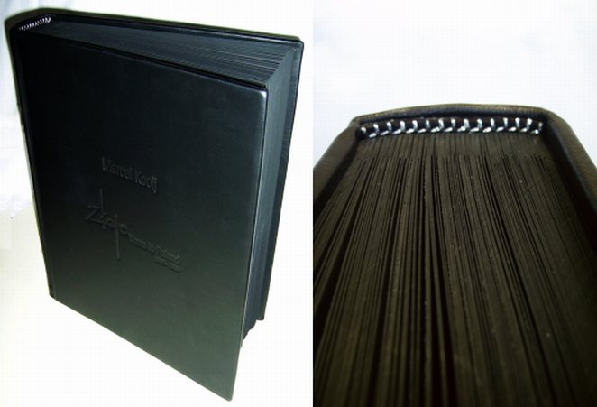 ![]() Oprawa albumowa skórzana, ręczne szycie kart, kapitałki szyte ręcznie, tłoczenia na okładce ślepe, wszyte przekładki dystansujące. Format B3+, 200 kart, karton ozdobny 200 g/m2 - skóra licowa - wyklejka z papieru ozdobnego |