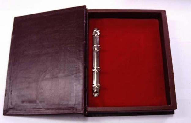 ![]() Oprawa skórzana, pudło segregatora z uchylnym wiekiem Format 23 x 32 cm - skóra cielęca: CBA174. - wyklejka flokowa (imitacja zamszu) 130 g/m2. |