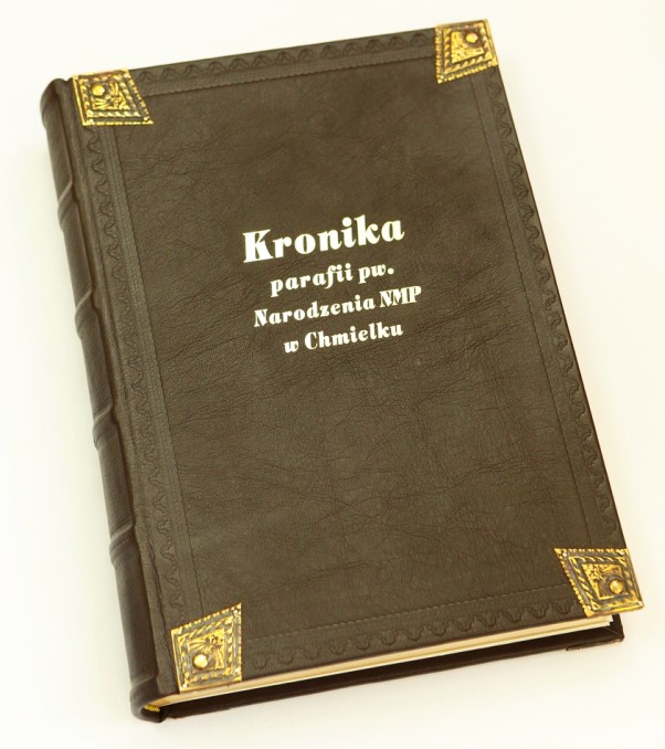 ![]() Oprawa skórzana, karty szyte ręcznie, wysokie zwięzy na grzbiecie, kapitałki szyte ręcznie, tłoczenia ślepe i złotem, mosiężne stylizowane okucia narożnikowe, barwione brzegi kart Format ca 30 x 42 cm, ca 200 kart - skóra naturalna - wyklejka z papieru ozdobnego |