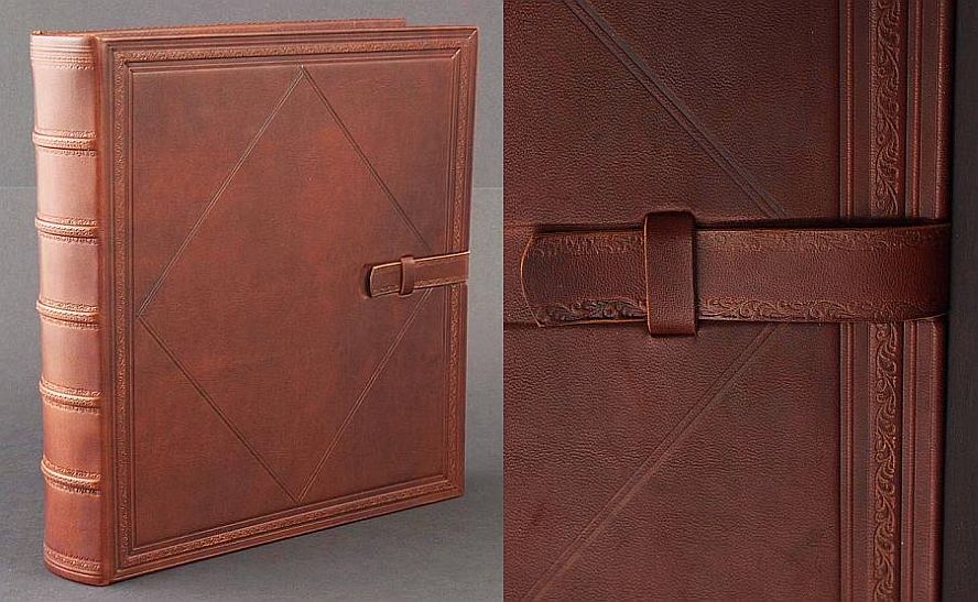 ![]() Oprawa skórzana albumowa, ręczne szycie z przekładkami dystansującymi karty księgi, zwięzy na grzbiecie, kapitałki szyte ręcznie, tłoczenie ornamentów suche na okładkach, zamykana paskiem Format 30 x 30 cm 150 kart, 100 przekładek dystansujących papier ozdobny albumowy 150 g/m2 skóra licowa antykowana wyklejka z papieru ozdobnego skórzany zdobiony pasek |